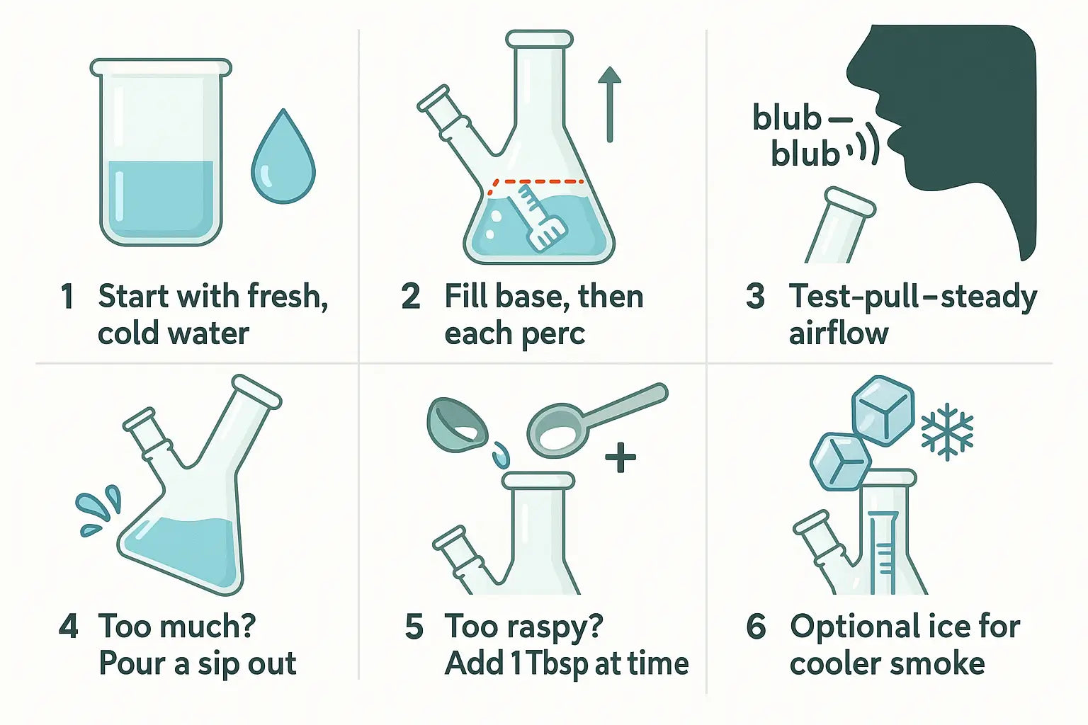 | Warm-water hack | On cold days, use slightly hot water (110 °F) for smoother hits | Warmer water humidifies smoke, easing throat burn—just watch too much water splashback. |