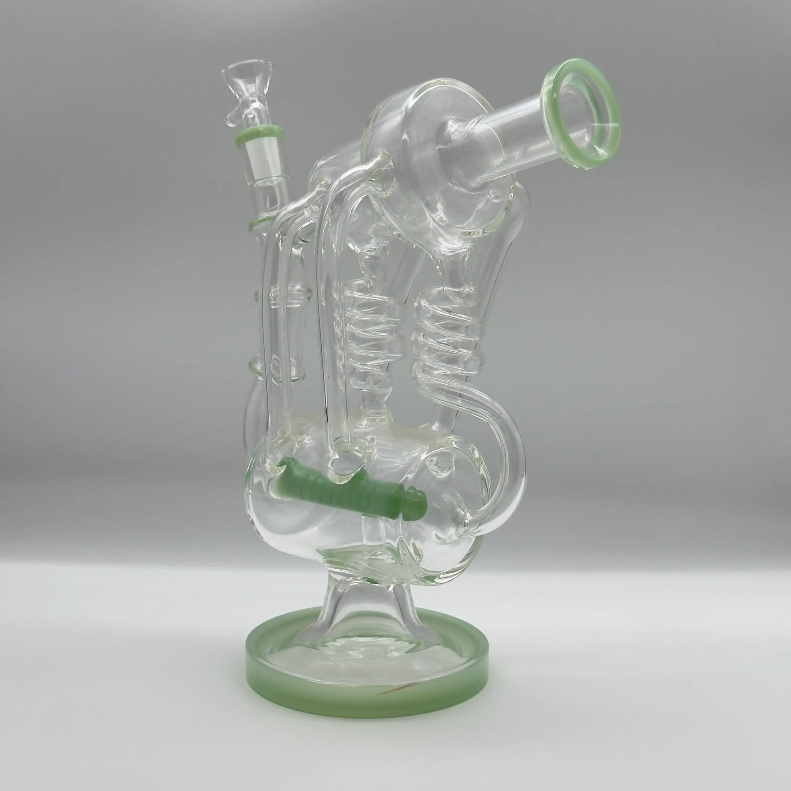 A recycler bong pushes multi-chamber filtration to the next level by continuously looping water—and the smoke it cools—between two (or more) chambers. As you inhale, smoke and water rise together, separate, and then the water “recycles” back down through a looping tube, ready to cool the next breath instantly. This nonstop motion keeps smoke fresh instead of letting it sit and get stale, so every hit tastes like the first draw.