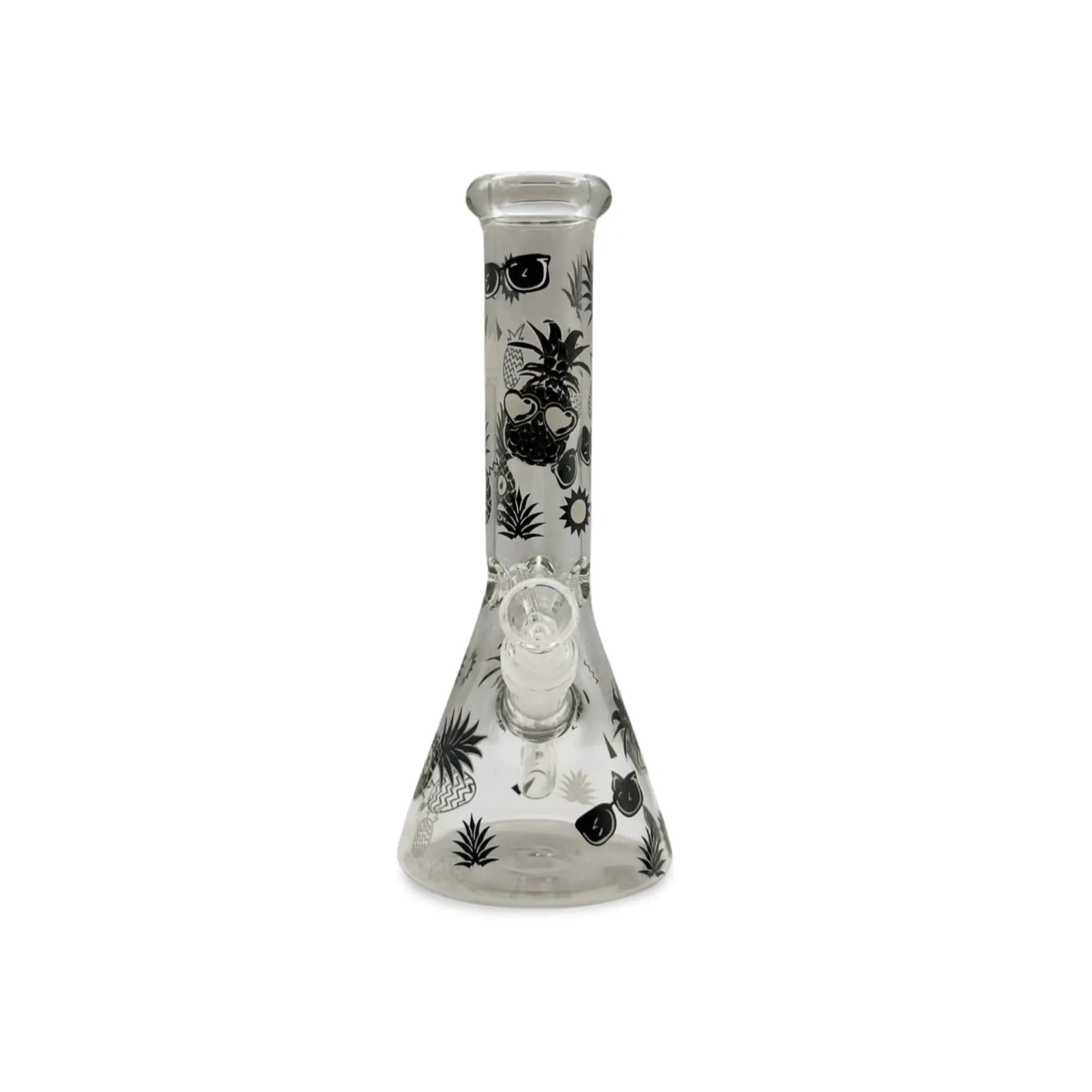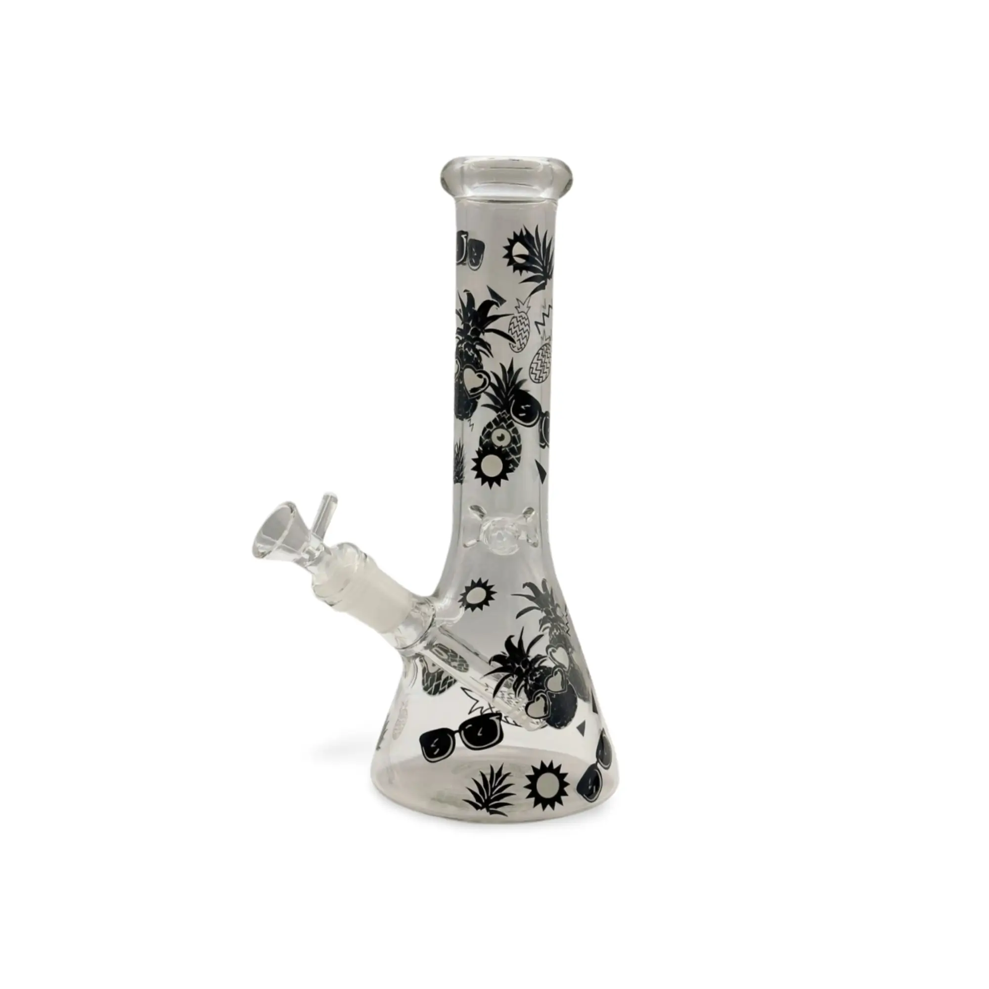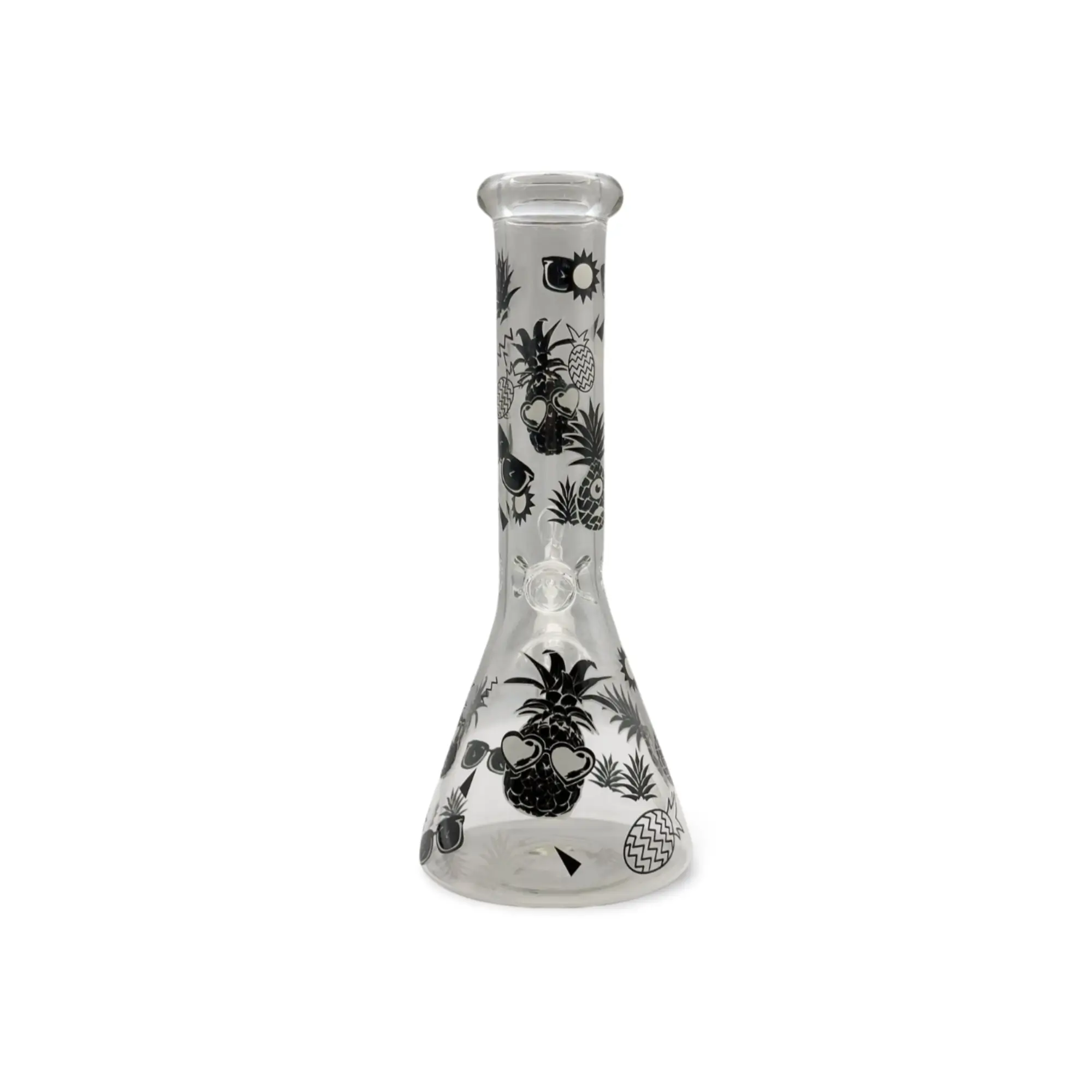 Bring tropical vibes into your smoking routine with our sleek Black Pineapple Glass Bong. Featuring a stylish monochrome pineapple and fruit pattern, this premium water pipe is as visually appealing as it is practical.