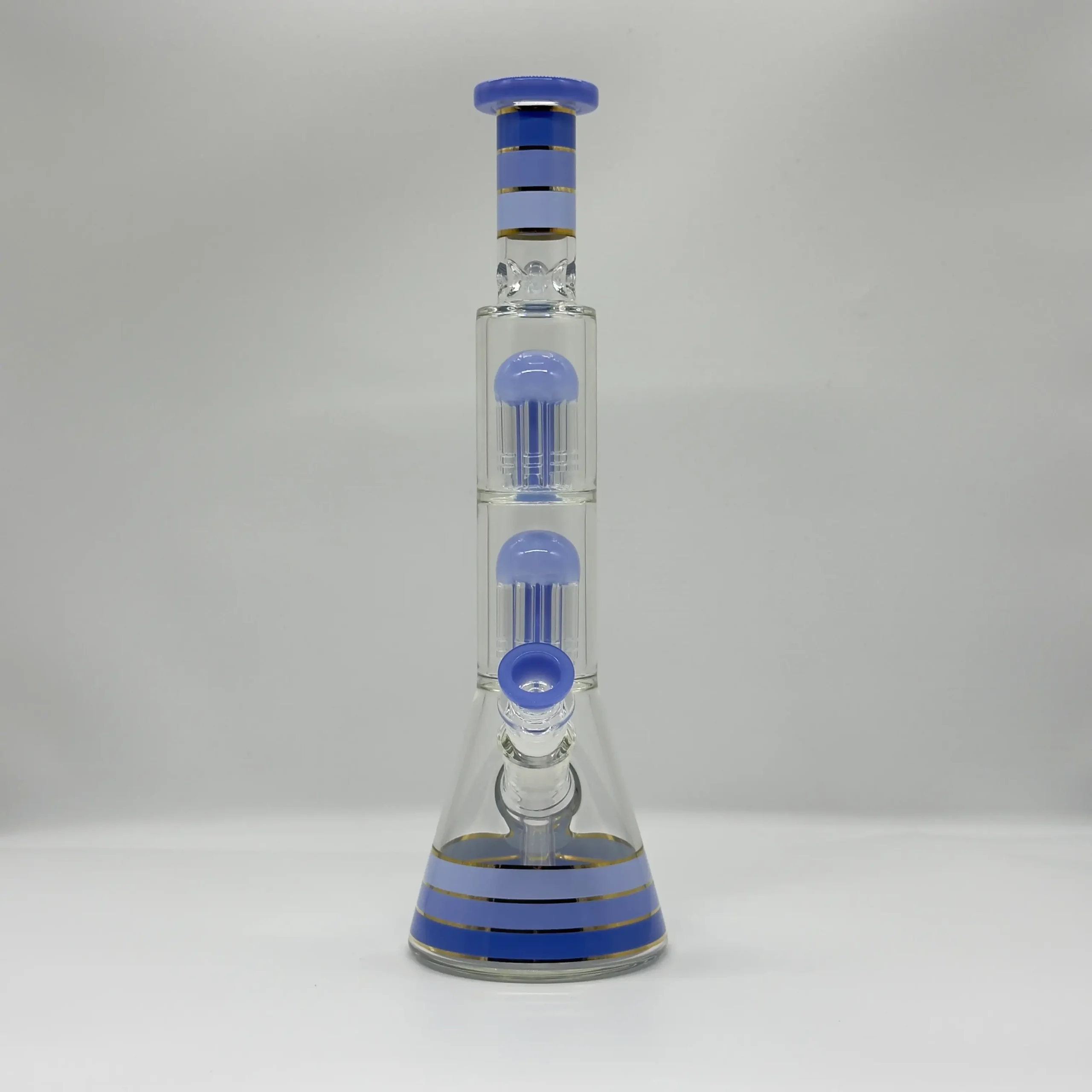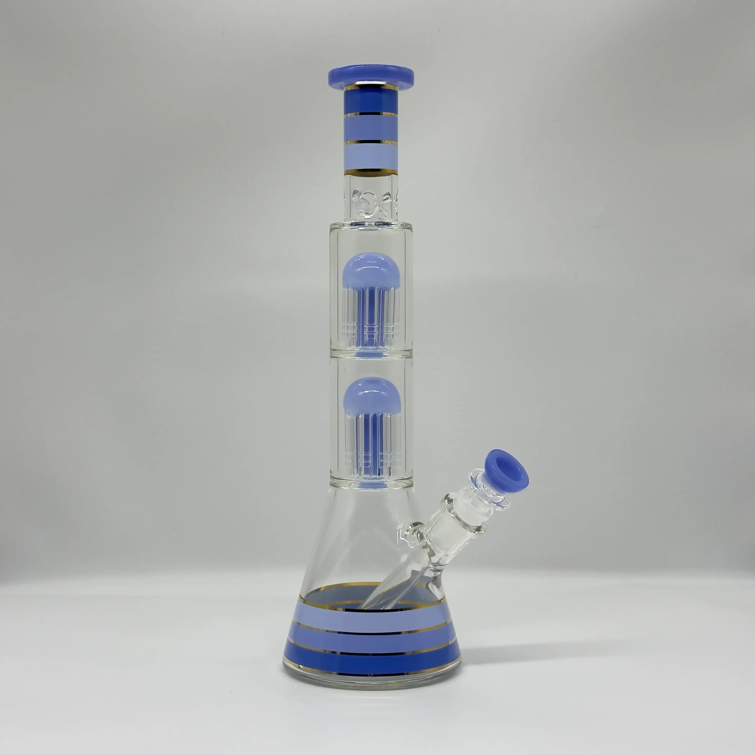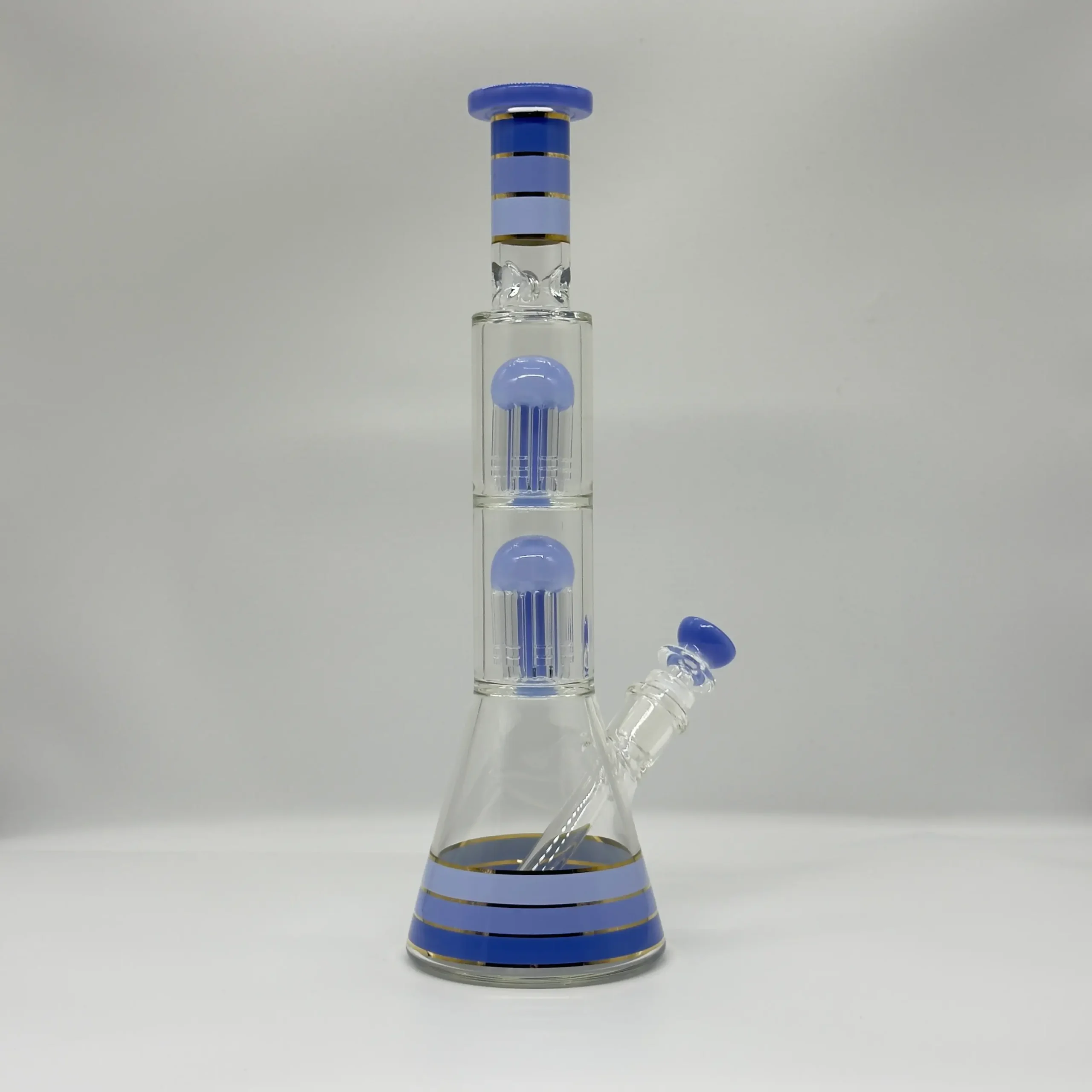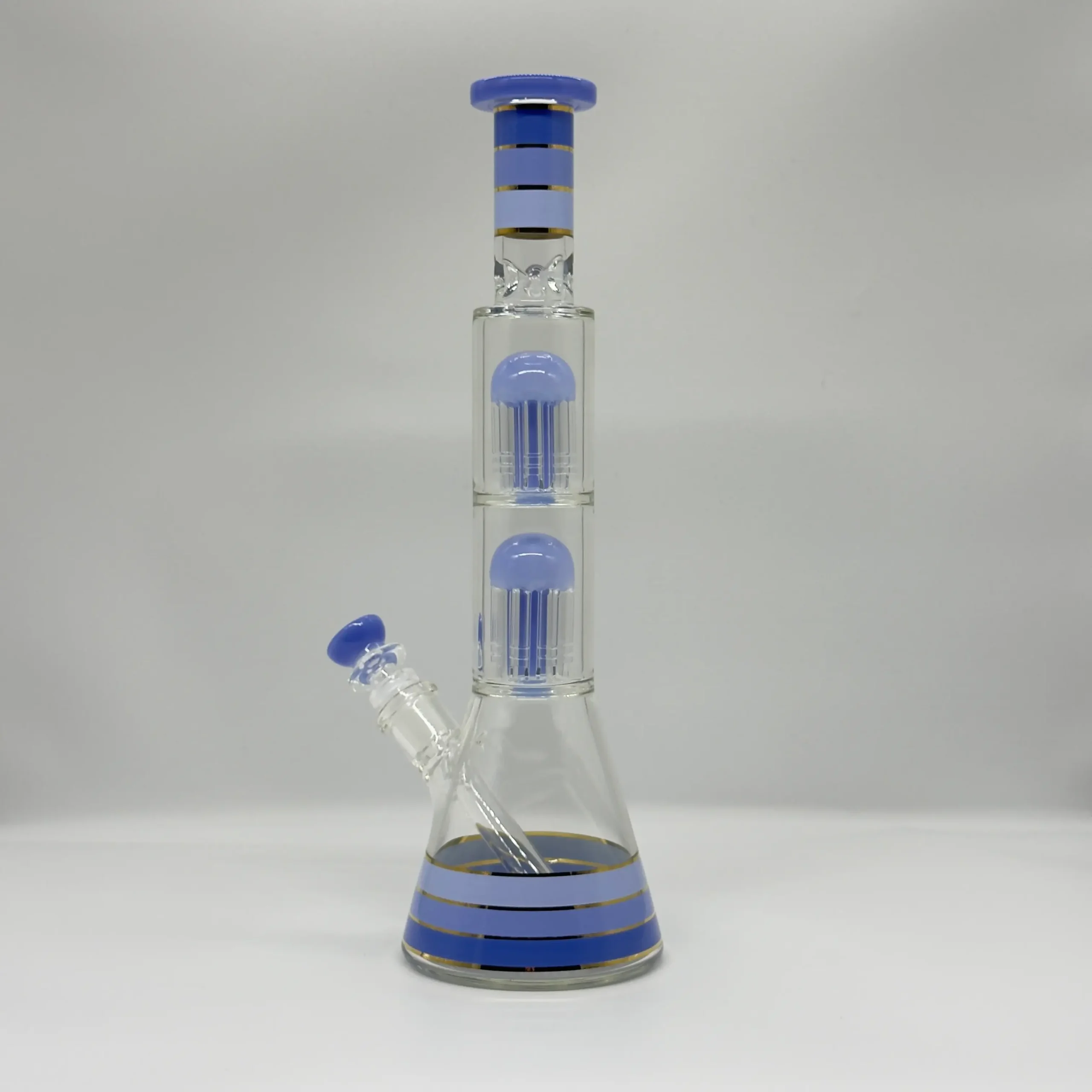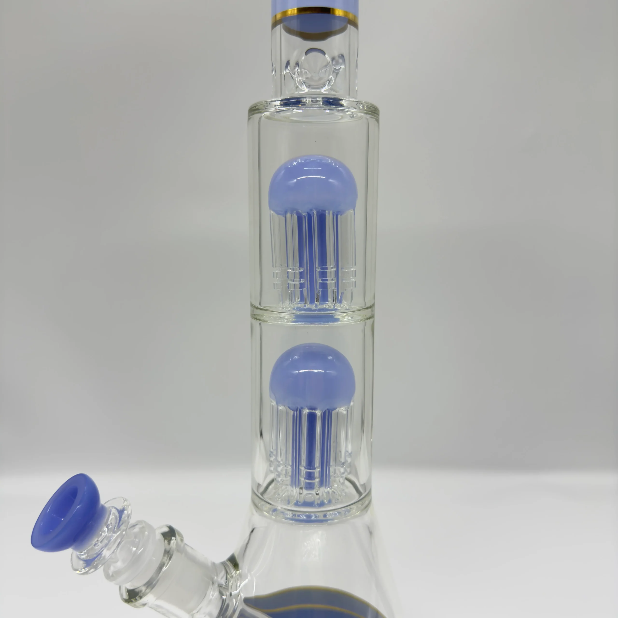 Turn every session into a smooth-as-silk spectacle with this 14-inch (35 cm) beaker bong equipped with two stacked jellyfish percolators and luxe blue-and-gold banding. More diffusion, cooler clouds, and head-turning style— all in one heavyweight (900 g) piece of borosilicate art.