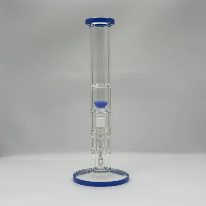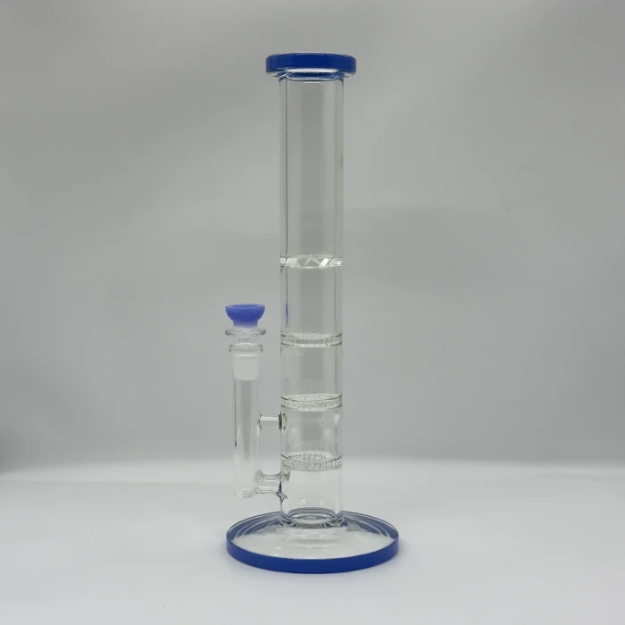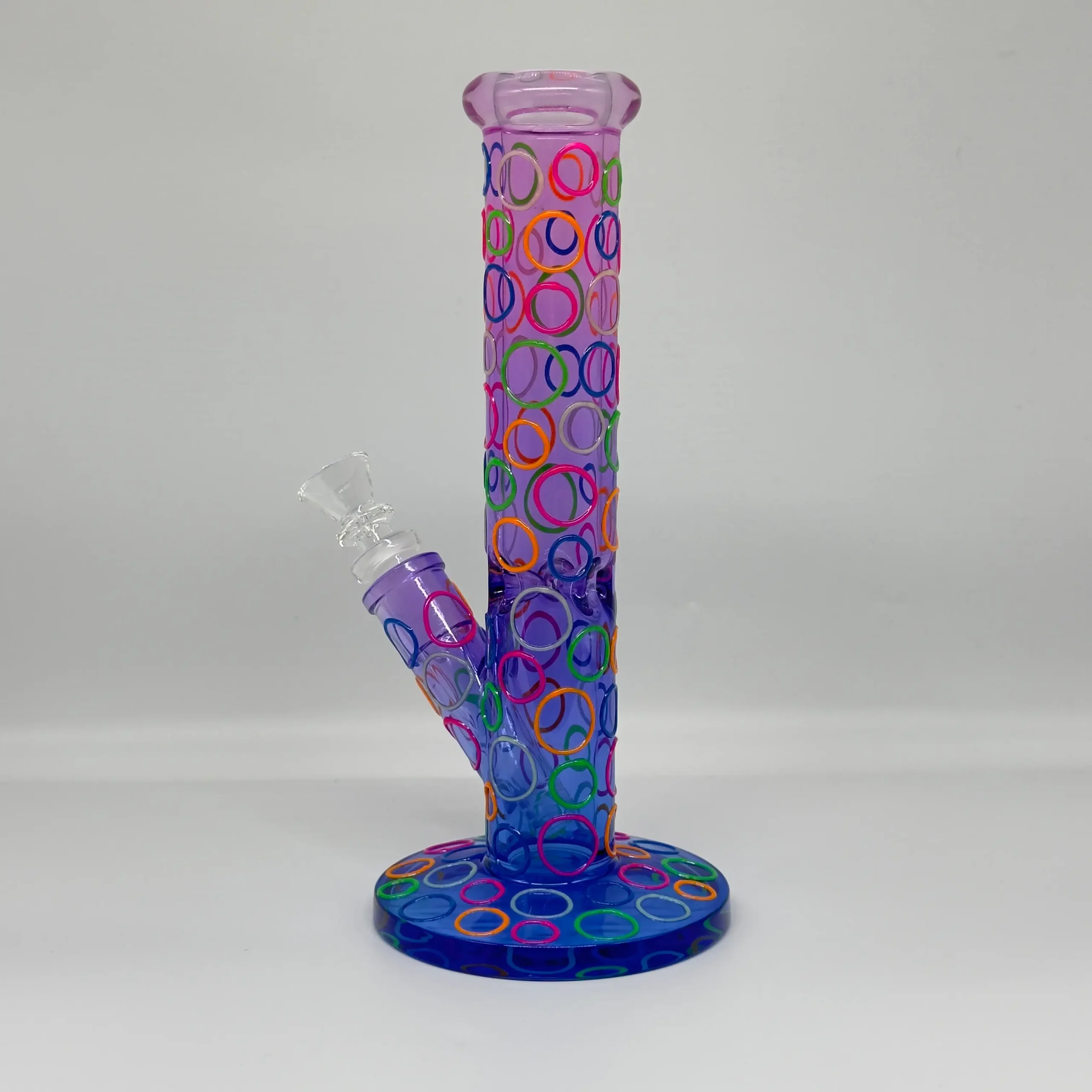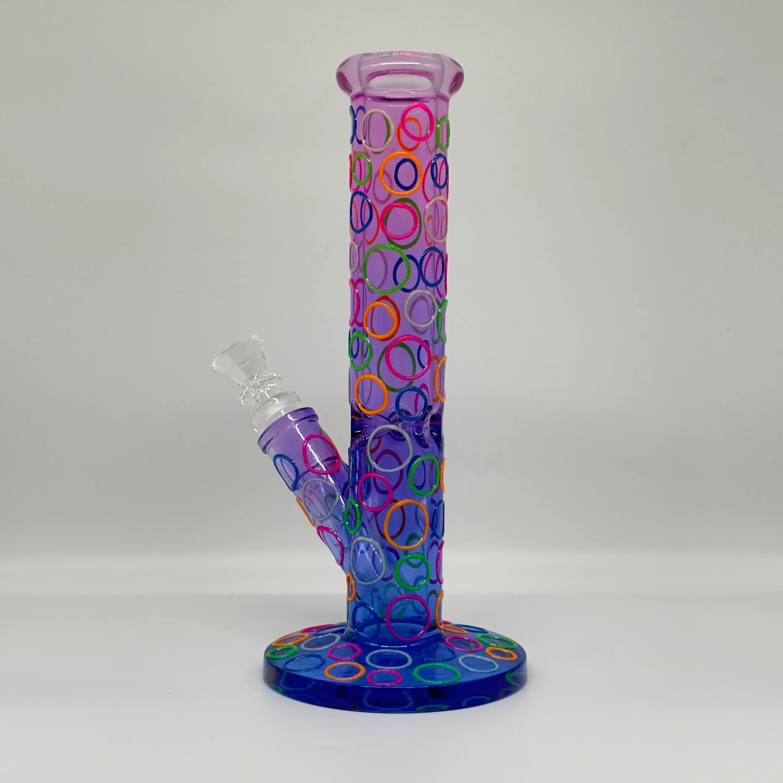 Daytime rainbow, night-time light show—this hand-blown glow-in-the-dark polka-ring glass bong is wrapped in raised neon circles that charge under normal light and explode into green, aqua, and red after dark. A 5 mm-thick straight tube delivers classic, no-drag pulls, while the extra-wide base keeps everything balanced.